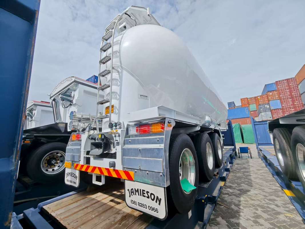 The Jamieson 1387-002 Tank Road Train Semi-Trailer is professional equipment specially designed for heavy-duty transportation. Produced by the well-known Australian brand Jamieson, it is renowned for its excellent quality and reliability.